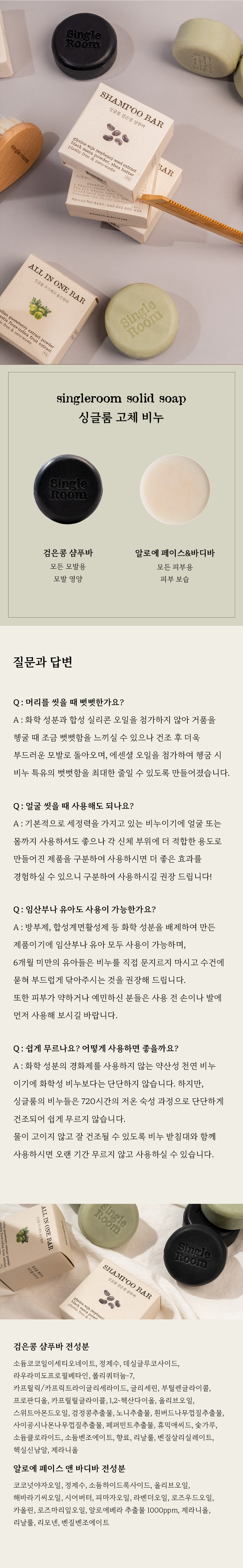 검은콩 추출물을 첨가한 싱글룸 검은콩 샴푸바로 지친 모발과 두피에 활력을 불어넣어 보세요