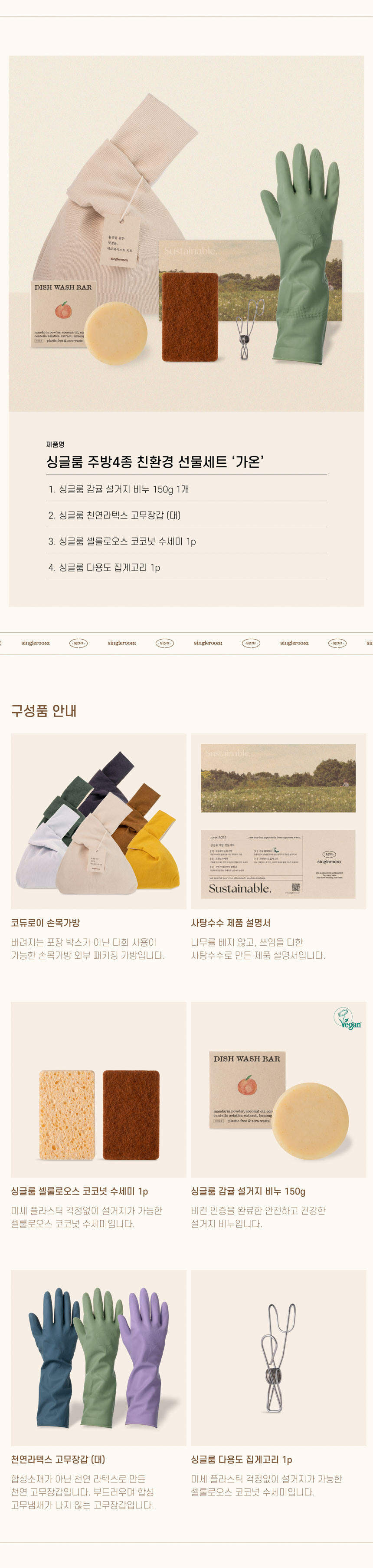 싱글룸 제로웨이스트 주방4종 선물세트 (가온)