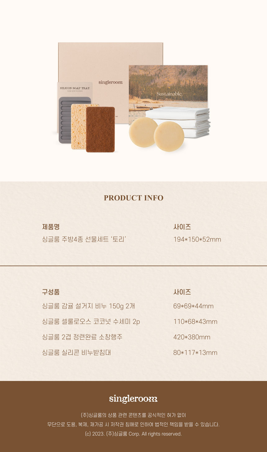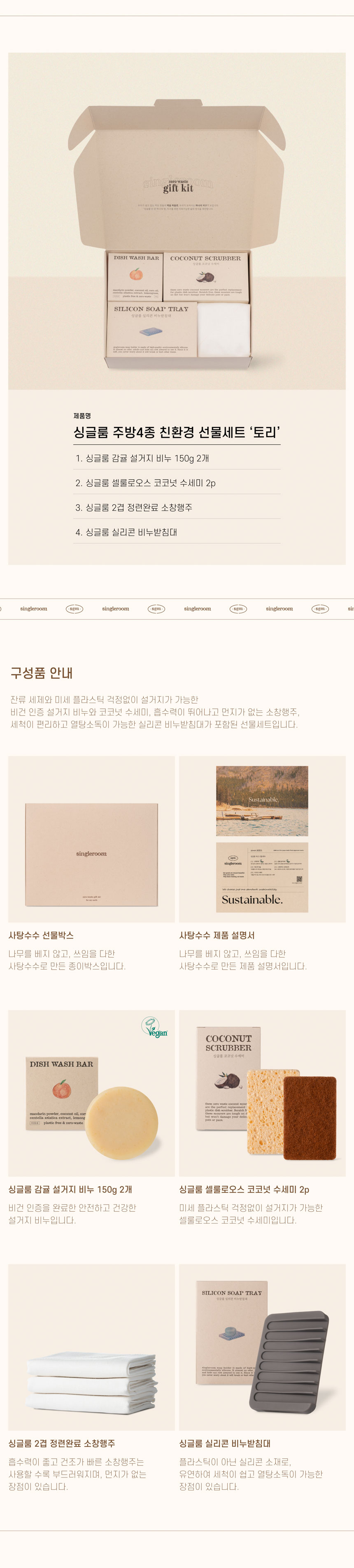 싱글룸 주방4종 친환경 선물세트 (토리)
