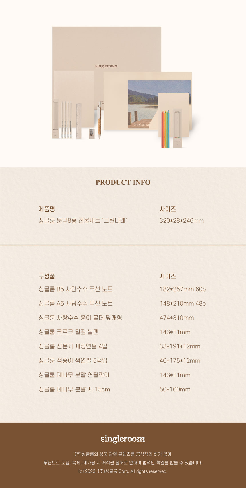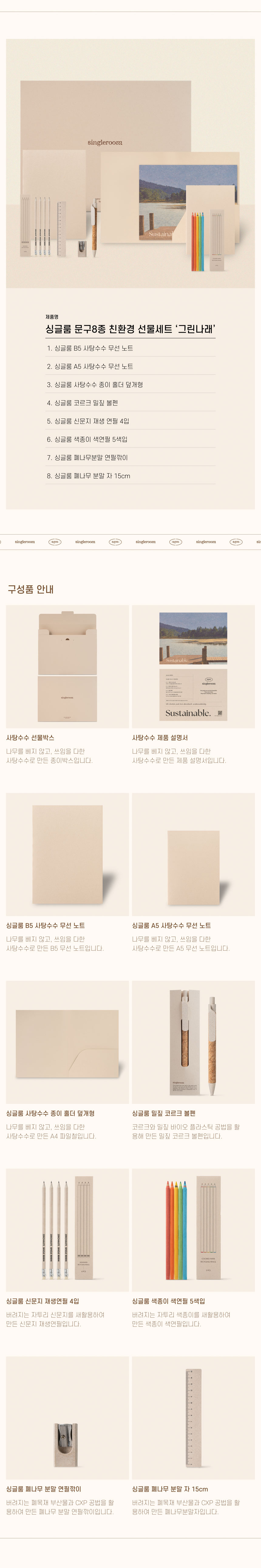 싱글룸 문구8종 친환경 선물세트 (그린나래)