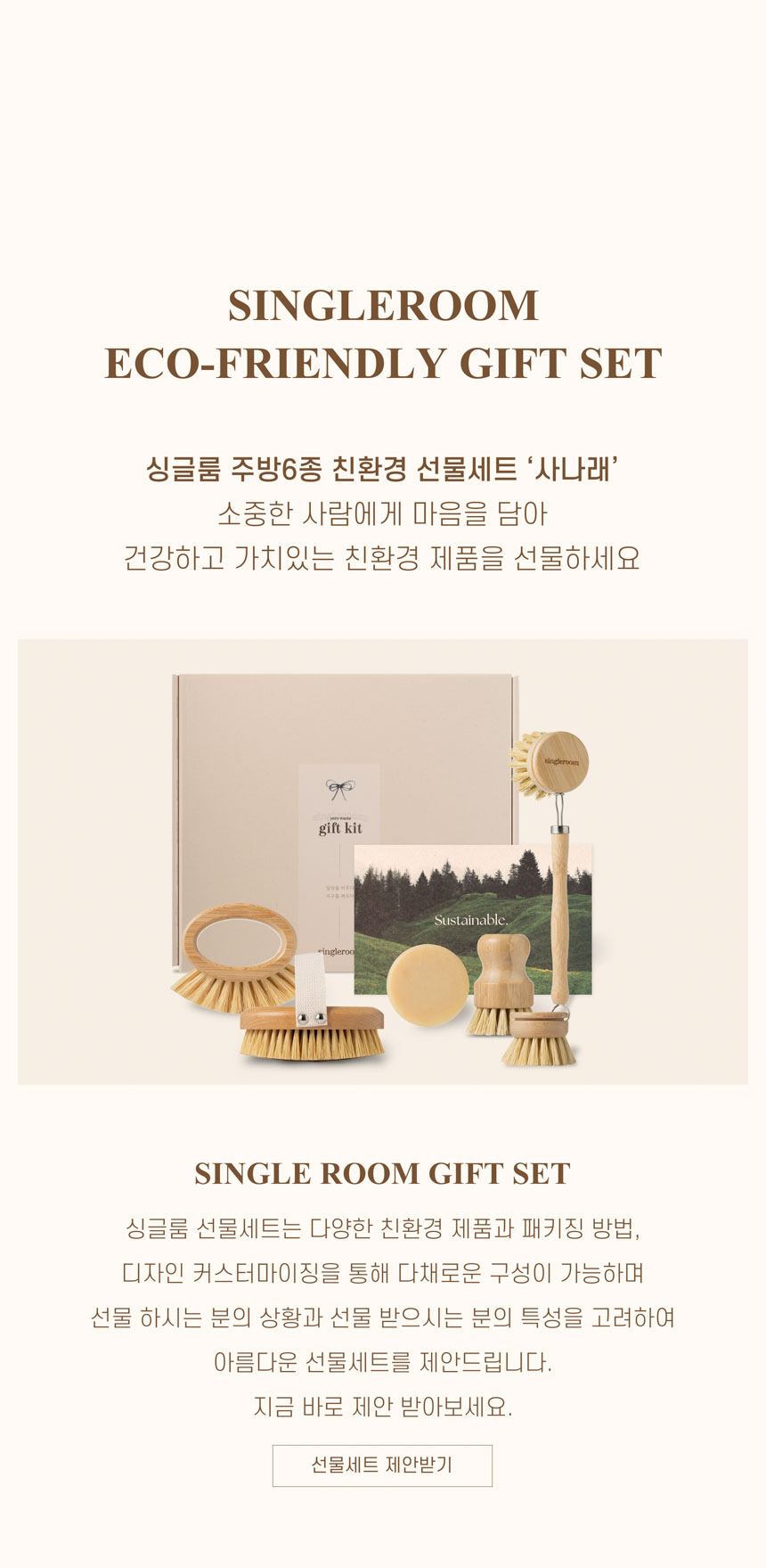 싱글룸 주방6종 친환경 고급 선물세트 세척솔 에디션 (사나래)