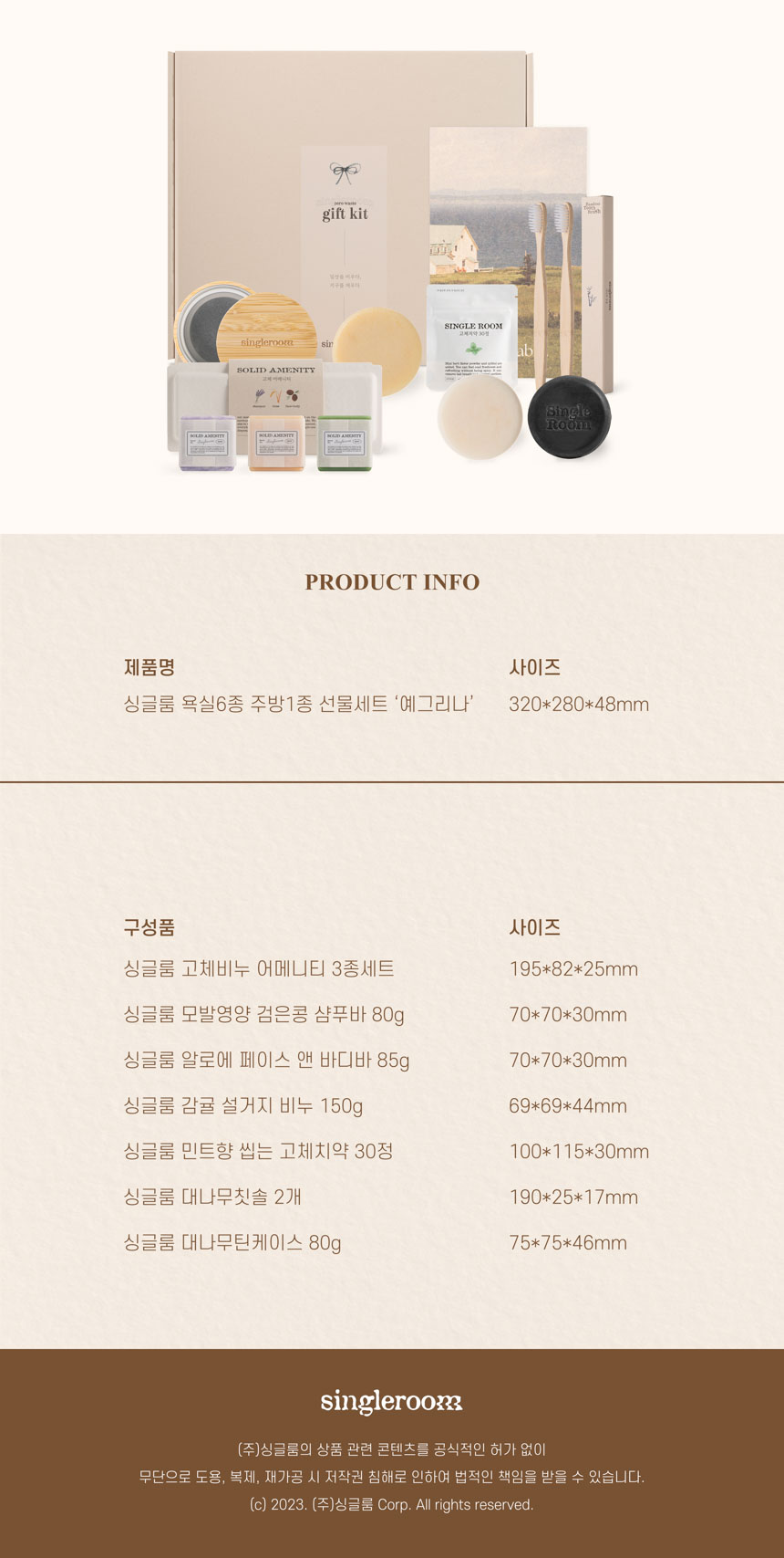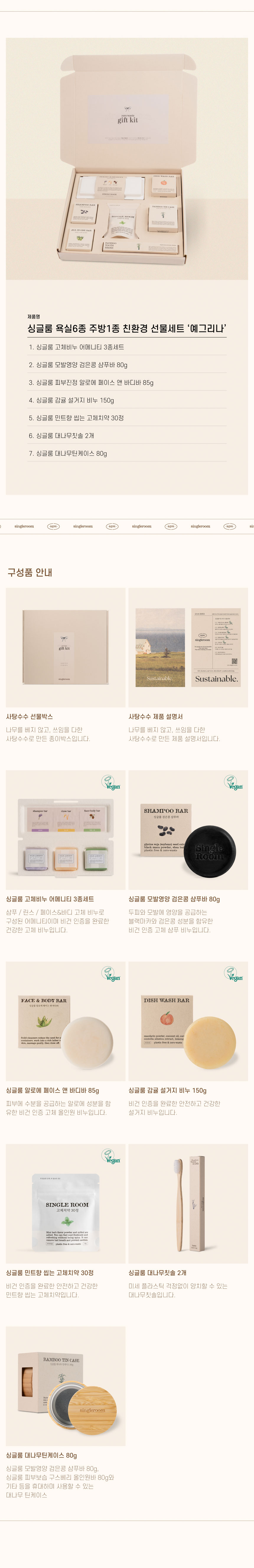싱글룸 욕실6종 주방1종 친환경 고급 선물세트 (예그리나)