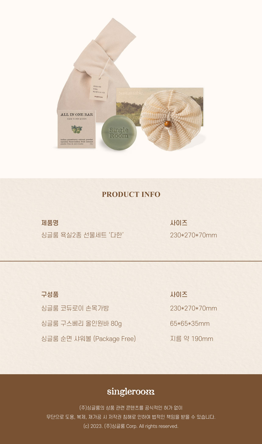 싱글룸 제로웨이스트 욕실2종 손목가방 선물세트 (다한)